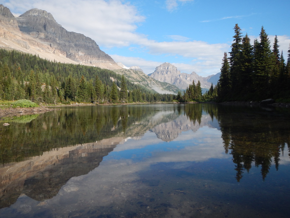 Opt for a long and scenic flight before and after your remote mountain wedding with 30 minutes flying time, landing at the truly lovely Cabin Lake in Marvel Pass, on the pristine east side of Mt Assiniboine. Due to the long flight the helicopter will shut down and remain at our wedding site with us, giving us a good hour for our wedding ceremony, a short walk to the lake, and plenty of photographs looking out over Aurora Creek or in front of Cabin Lake.